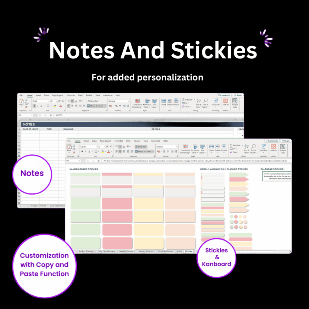 Allows users to add personalization with their own sticker collection. Enhances flexibility through the copy and paste function for tailored note-taking.