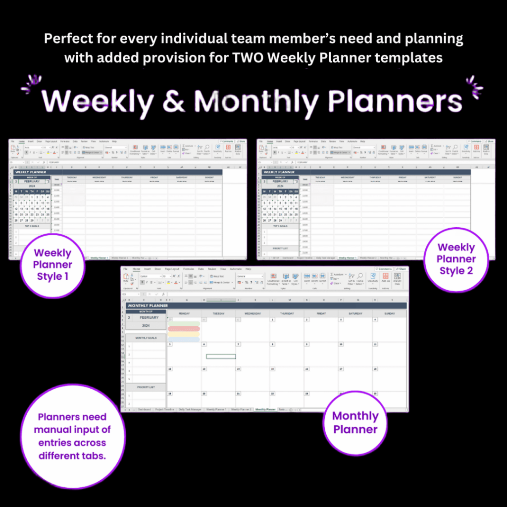 Provides multiple Weekly Planner options. Flexibility to choose a preferred planning style.