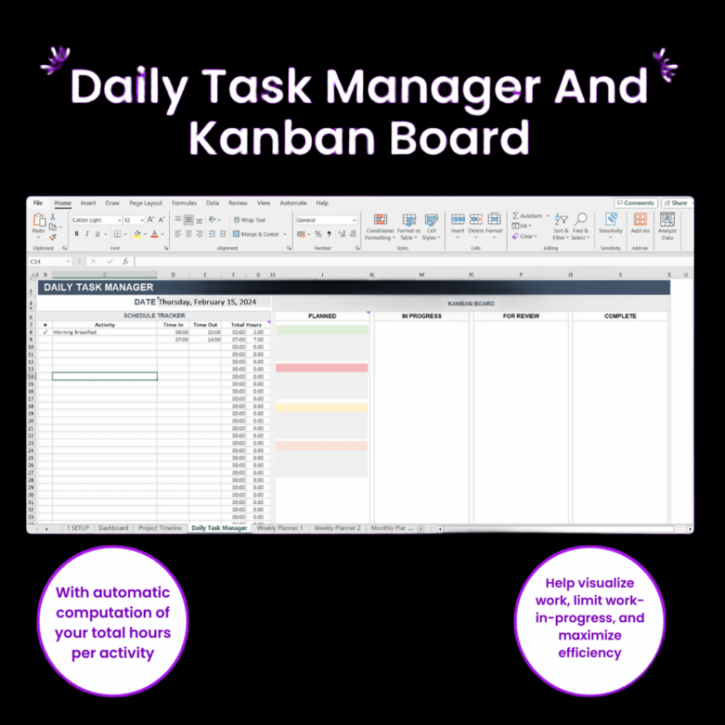 Records day-to-day activities and time spent on each task. Automatically computes time allocation for a comprehensive view of your day.