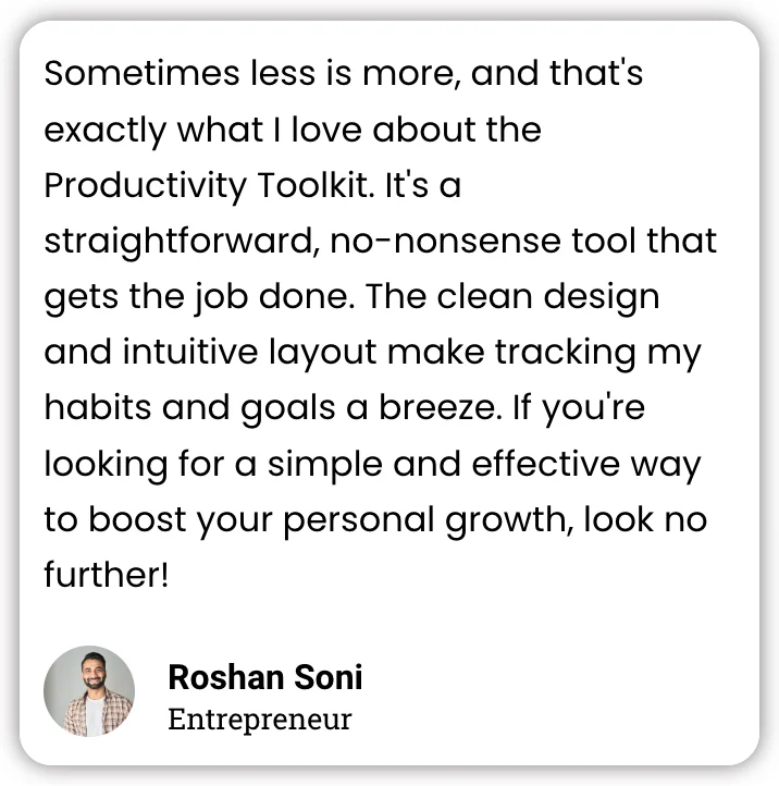 The toolkit is perfect for entrepreneurs, freelancers, project managers, coaches, students, and anyone looking to improve their productivity and reach their goals faster.