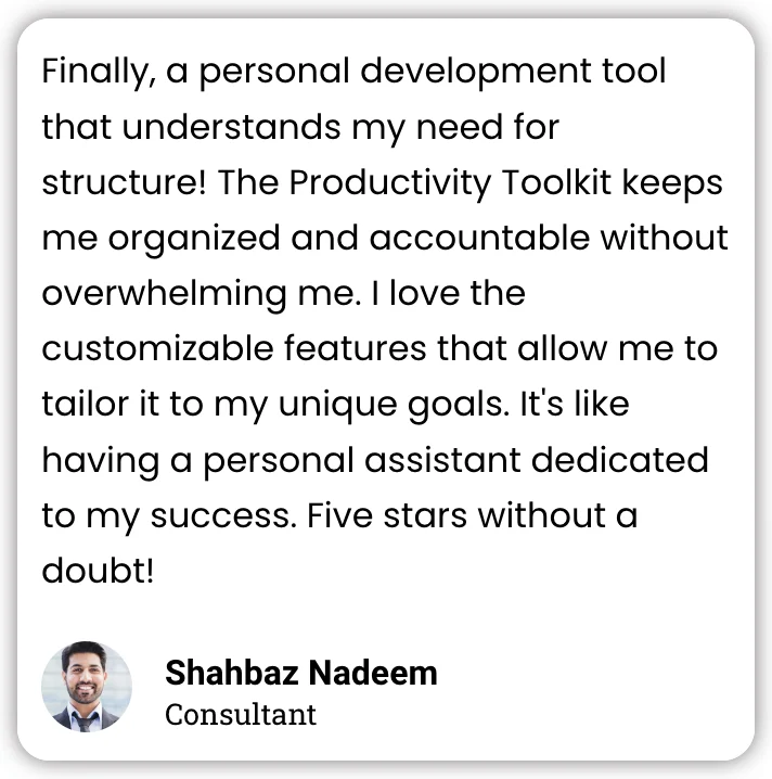 Our toolkit includes habit trackers, goal-setting templates, time management sheets, and motivational prompts, all designed to help you stay on track and achieve your personal and professional goals.